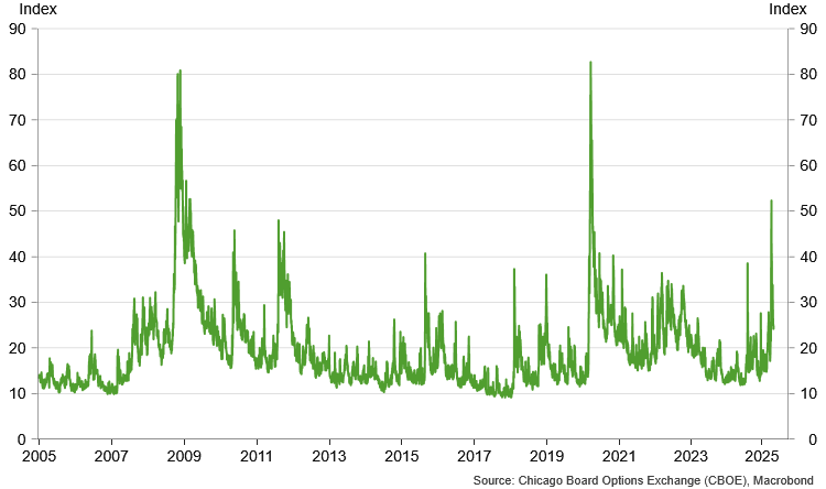 Implied volatility of the S&P 500, daily.
